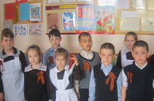 В канун празднования дня Победы и дни проведения акции в знак памяти о героическом прошлом, выражая уважение к ветеранам, отдавая дань памяти павшим на поле боя, благодарность людям, отдавшим всё для фронта в годы Второй мировой войны учащиеся прикрепили "Георгиевские ленточки". Учителя рассказывали детям историю возникновения Георгиевской ленточки,которая является репликой традиционной Георгиевской ленты, черно-оранжевые цвета которой стали символом военной доблести и славы России. -