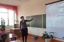 В 4а классе был проведен классный час. Презентация была составлена в виде вопросов и ответов. Дети задавали дополнительные вопросы. Они ознакомились с краткой биографией Ю.А.Гагарина. После этого пришли к выводу: стать космонавтом сможет каждый, если имеет крепкое здоровье и необходимые знания и умения, т.е. подготовку. В конце занятия учащиеся в парах обсуждали вопрос: хочешь ли ты полететь в космос и каждый огласил мнение своего напарника.