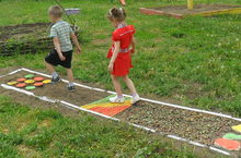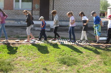 Интересно проходят утренние гимнастики на свежем воздухе, ходьба по массажной дорожке.