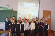 Специалисты Новошешминского РДК провели экскурсию для 4-х классов нашей школы детский сад по передвижной выставке «Отец героя» и «Семья героя» чьи сыновья погибли в ходе Специальной военной операции на Украине.