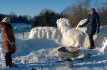 Балалар тырыша, берсеннән -берсе матур кар уенчыклары ясый. Укытучы апалары - алардан калышмый.
