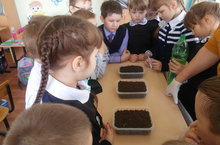 Под таким девизом учащиеся 1 б класса Новошешминской начальной школы посадили семена петунии.