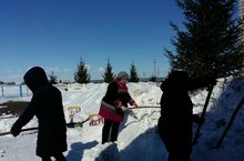 Начался двухмесячник по благоустройству территории. Сегодня в школе проводилась работа по очистке территории от снега