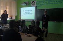 21 апреля был проведен урок, посвященный «Дню местного самоуправления». На уроке присутствовал директор, депутат сельского поселения Валасеев В.Г. Ученики познакомились с историей, основными законами, положениями, касающимися местного самоуправления. Изученное закрепили интересной викториной.