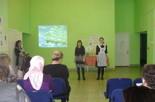 «Интерактивные технологии как компонент профессиональной компетенции учителя русского языка и литературы». Были показаны открытые уроки и внеклассное мероприятие учителями русского языка и литературы Валасеевой Т.В. и Юзумхановой Р.А. Внеклассное мероприятие было посвящено 245-летию великого баснописца И.А. Крылова.