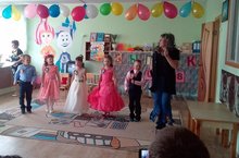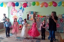 Старшая группа совместно с летним лагерем приняли участие в развлекательной программе в сельском клубе.