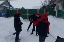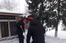 Очистка от снега памятника./Һәйкәлне кардан чистарту 17.01.2022