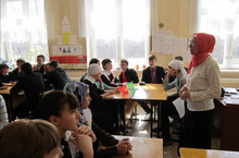 - Во второй части урока учащиеся разделились на 4 команды и соревновались между собой. В ходе игры учащиеся решали разные ситуации, составили программы на тему "Если я стану депутатом" и т.д.