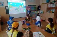 Члены отряды ЮИД воспитанникам детского сада "Йолдыз" поставили инсценированную сказку "Теремок" по правилам дорожного движения. В конце вместе провели игры на знание ПДД, решали загадки. -