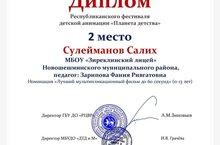 Ученик 5 класса Сулейманов Салих занял 2 место в республиканском фестивале детской анимации "Планета детства".