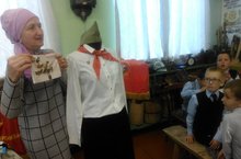 В музее народного творчества и быта прошел очередной классный час для учащихся начальных классов.Тема урока:100 летие комсомола.