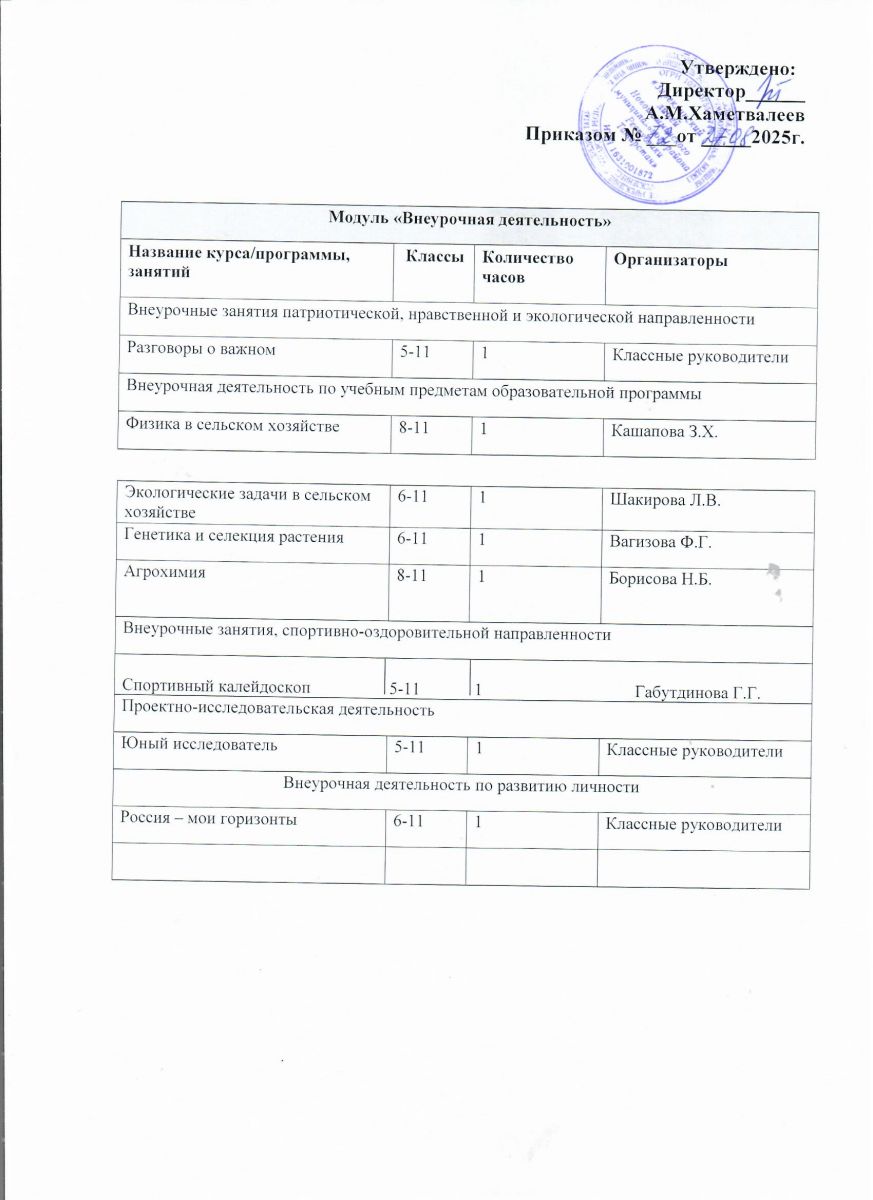 Расписание внеурочной деятельности на 2025 -2025 уч.год ООО и СОО