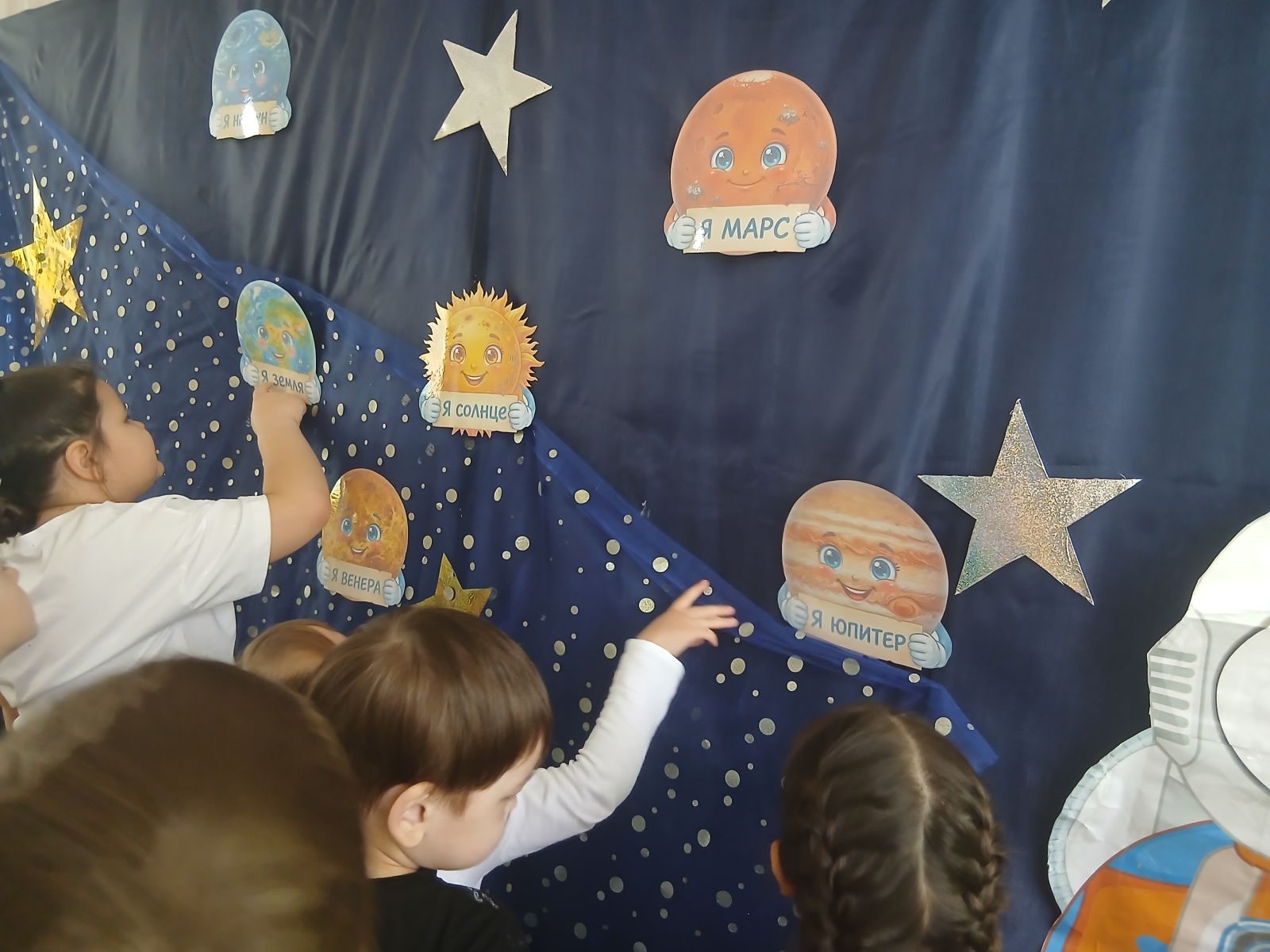 Итоговым мероприятием декады космонавтики стал праздник «Космическое путешествие». Детей ждали интересные испытания. Они прошли «предполетную» физическую подготовку — это были зарядка и тренировочные упражнения. С азартом дети приняли участие в эстафетах: стартовали» в ракетах со своего космодрома, преодолевали невесомость. Какой же полет в космос без весёлого танца? Именно «космическая» музыка помогла детям в большей степени представить себя настоящими космонавтами.