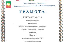 Наш воспитанник Паймурзин Расиль прнимал участие в муниципальном этапе Республиканского конкурса рисунков и видеороликов "Буду бдительным на льду и на воде" и занял 2 место.