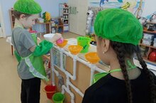 Наши маленькие исследователи с большим интересом занимались измерением скорости и объема воды.