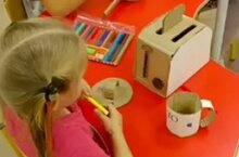 Вооружившись ножницами, клеем и фломастерами, юные мастера принялись за дело. Из картона ловко вырезались тарелки, чашки, блюдца и даже чайники. А затем, с помощью ярких фломастеров, картонная посуда превратилась в настоящие произведения искусства!