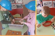 В старшей группе "Гномики" прошёл тематический день "День Геолога". Дети много познавательного узнали о работе геолога: геологи ищут полезные ископаемые, во время экспедиции живут в палатках, носят собой инструменты, тяжёлые рюкзаки с вещами.