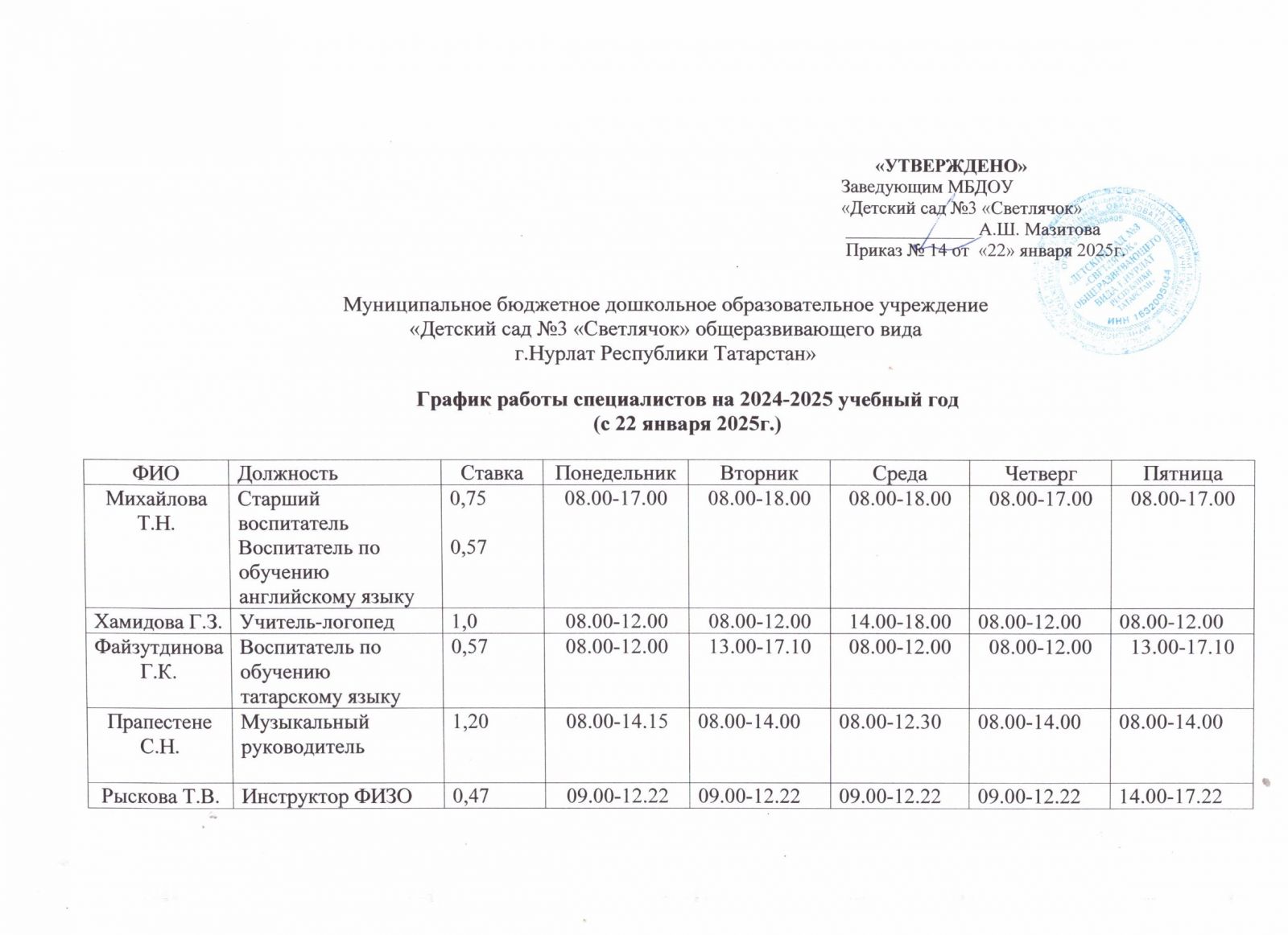 График работы специалистов на 2024-2025 учебный год с 22 января 2025 года