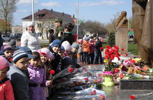 8 мая в торжественной обстановке с детьми старшего дошкольного возраста прошло музыкально-тематическое занятие посвящённое Дню Победы. Дети с гордостью рассказали стихотворения посвященные Дню Победы, исполняли песни. Мальчики подготовительных групп исполнили военный марш, а девочки подготовительной группы «Б» исполнили танец белых лебедей. Почтили память павших минутой молчания. Итогом праздничного мероприятия стала экскурсия с возложением цветов к вечному огню.