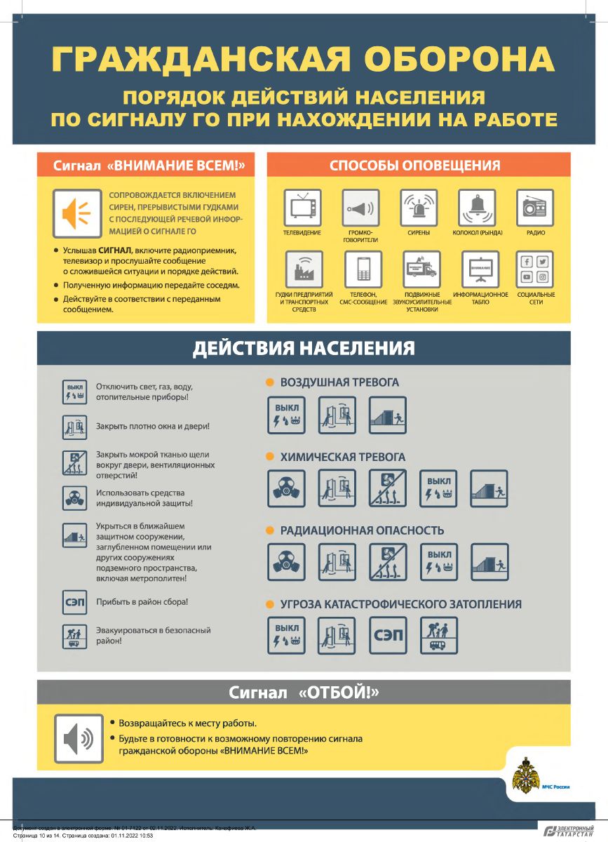 Порядок действий населения по сигналам ГО при нахождении на работе/Эштә булганда ГО сигналы буенча халыкның гамәлләр тәртибе/
