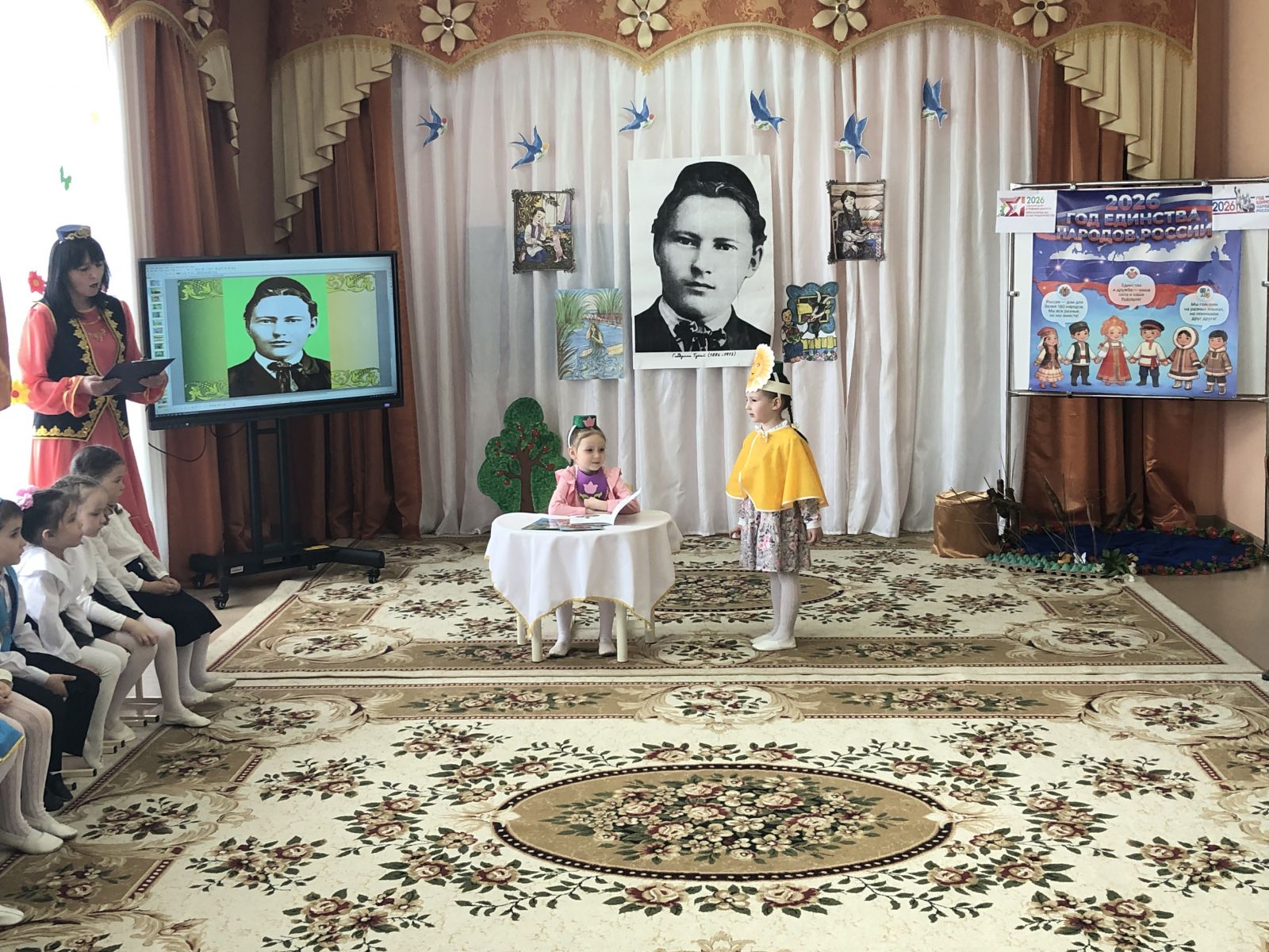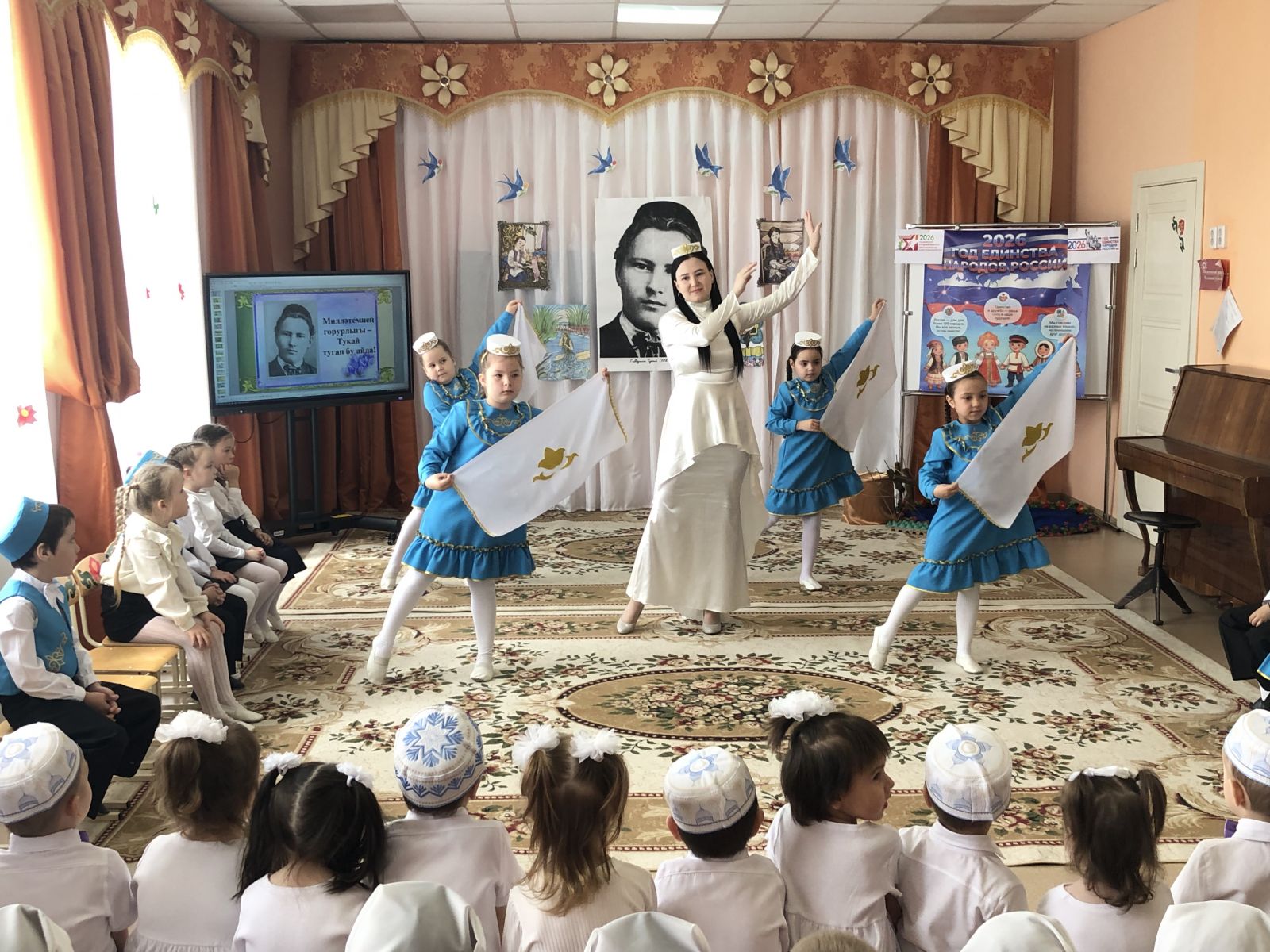 Опубликовано: 24.04.2026В нашем детском саду прошло литературно-музыкальное мероприятие "Тукай в наших сердцах", посвященное ко дню рождения великого татарского поэта Г. Тукая. Воспитанники показали инсценировки по произведениям Г.Тукая. В рамках данного мероприятия дети узнали о творчестве татарского поэта, научились видеть и понимать красоту родной природы, закрепили знания о татарской национальной культуре.️