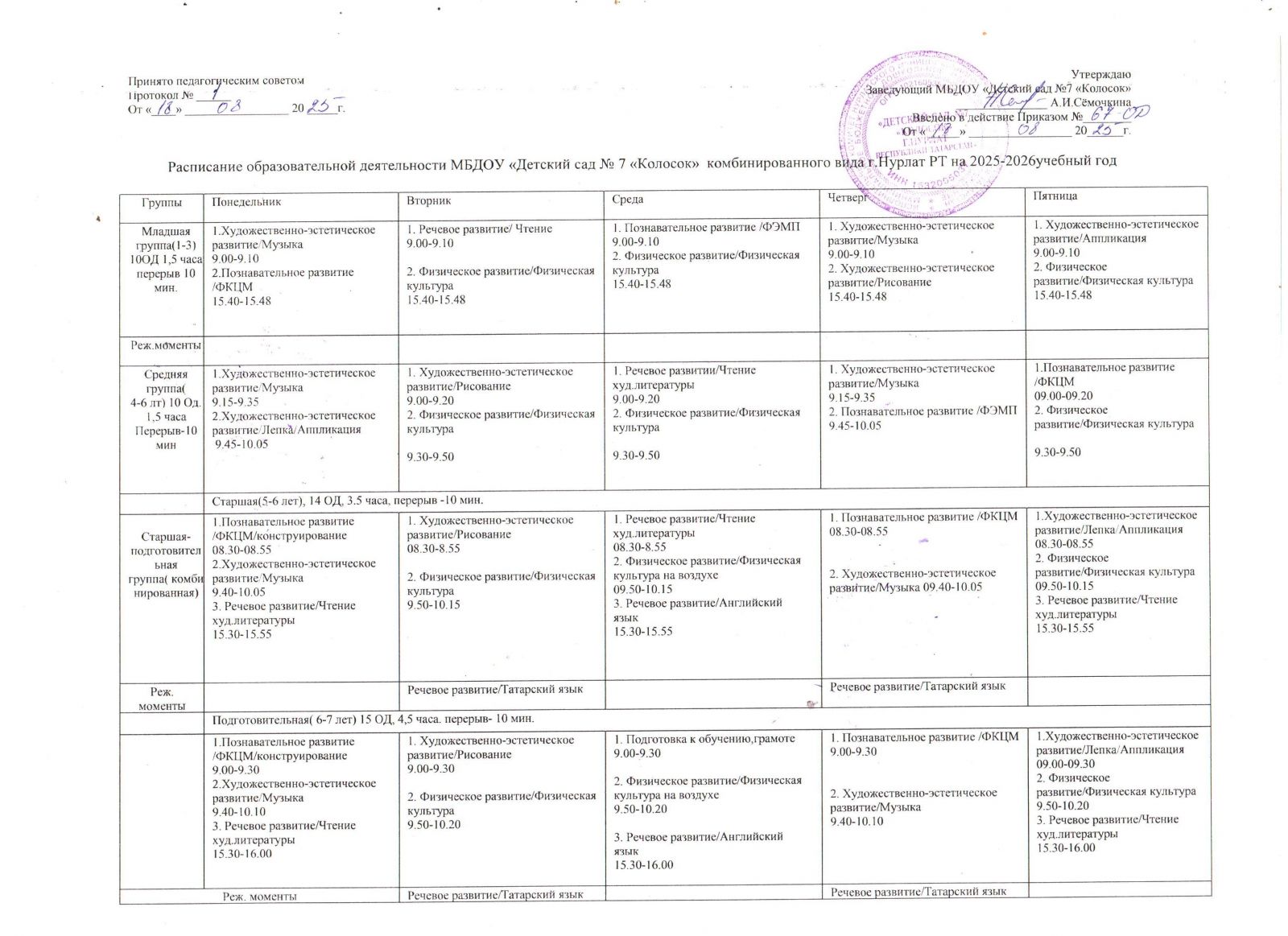 Расписание ОД на 2025-2026 уч.гг.
