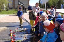 «Приближается великий праздник - День Победы! Накануне праздника по традиции в нашем детском саду проводятся занятия, утренники, посвященные Дню Победы. Педагоги накануне знаменательного дня организовали экскурсию к мемориалу Памяти и Славы, где воспитанники детского сада возложили цветы и почтили память павших минутой молчания.