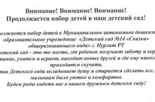 Продолжается набор детей в Детский сад №14 "Сказка"