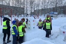 Снежный городок на участке детского сада. Весело гуляя изучаем правила дорожного движения.