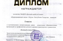 Диплом за III место в смотре-конкурсе "Зелёный огонёк""Яшел ут" республика смотр конкурсында 3 нче урынга лаеклы диплом 06.04.2018