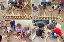 Бүген "Нурлар" төркемендә зур төзелеш башланды! Яшь архитекторлар һәм инженерлар фантазиягә ирек бирделәр һәм "Бабашка" агач конструкторыннан күз алдына китерә алган бөтен нәрсәне ясадылар! Монда тиз машиналар да, уңайлы йортлар да, бормалы юллар да бар.