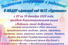 Благотворительная акция «Поделись своей добротой»/"Үзеңнең яхшылыгың белән бүләклән" хәйрия акциясе 07.12.2020