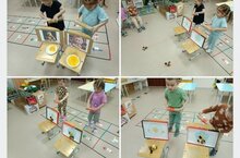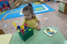 Изучали геометрические фигуры и цвета, дети вместе с Анастасией Владимировной знакомились с кругом, квадратом и треугольником, сортировали предметы по цвету и складывали картинки из фигур.