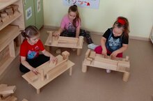 Сегодня группа "Фиксики" с Ларисой Витальевной занимались строительством "Айти- салона". Готовятся к работе будущие программисты. Игра с деревянным конструктором "Бабашки" помогает детям развивать свои навыки и способности в различных направлениях.