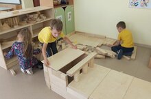 Диңгез чакыра! "Фиксиклар" белән кораб төзибез! «Портта» мультфильмыннан кораб турындагы җырны тыңлагач, балаларның портка эләгәсе, диңгезчеләр буласы һәм гаҗәеп диңгез сәяхәтенә китәсе килдеме? Бик тырыштык! Балаларның мөстәкыйль эшчәнлеге бөтен җирдә. Тәрбияче балаларга ирек бирде һәм вакыт-вакыт кына: "Төзелешне кайдан башлыйбыз? Нигә? Нәрсә төзисез? Нинди детальләр кирәк? Ярдәм кирәкме? Барысы да тотрыклымы? Тикшереп кара."