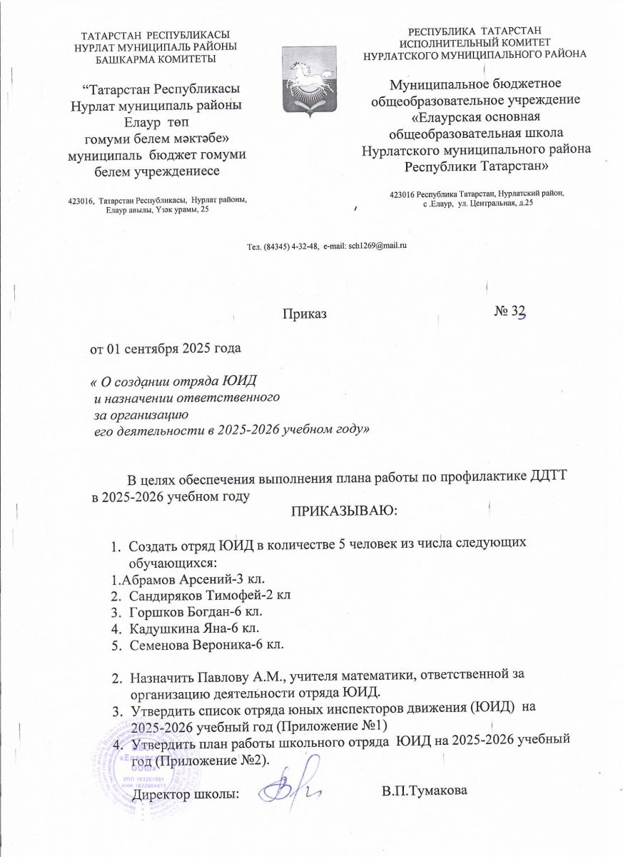 Приказ ЮИД на 2025-2026 учебный год
