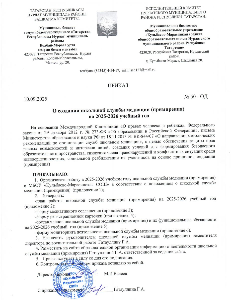 | Короткое название: | МБОУ "Кульбаево- Марасинская СОШ" Нурлатского муниципального района РТ |