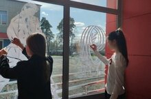 Учащиеся школы присоединились к акции "Окна Победы". / Мәктәп укучылары "Җиңү тәрәзәләре"акциясенә кушылдылар.