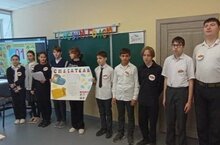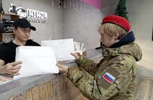 Юнармеец Долгов Матвей передал письма учащихся солдатам в пукт приема. / Яшь армияче Долгов Матвей укучыларның хатларын солдатларга кабул итү пуктына тапшырды.