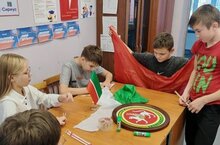 В Центре детских инициатив весь учебный день работала творческая мастерская по изготовлению настольного флага Республики Татарстан./ Балалар инициативалары үзәгендә көне буе Татарстан Республикасының өстәл флагы ясау буенча иҗади остаханә эшләде.