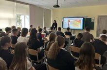 Для учащихся средних и старших классов повар школьной столовой провела беседу о здоровом образе жизни. В рамках мероприятия были рассмотрены вопросы правильного питания, соблюдения режима сна, поддержания водного баланса и важности физической культуры. Беседа способствовала формированию у обучающихся представлений о сохранении и укреплении здоровья. / Урта һәм өлкән сыйныф укучылары өчен мәктәп ашханәсе пешекчесе сәламәт яшәү рәвеше турында әңгәмә үткәрде. Чара кысаларында дөрес туклану, йокы режимын саклау, су балансын һәм физик культураны саклау мәсьәләләре каралды. Әңгәмә укучыларда сәламәтлекне саклау һәм ныгыту турында күзаллаулар формалаштыруга ярдәм итте.
