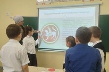 34 года назад был утвержден символ, которым гордится народ нашей многонациональной Республики. В ходе беседы ребята вспомнили историю создания и принятия герба Республики Татарстан, что означает каждый элемент этого символа государственной власти. / 34 ел элек күпмилләтле республикабыз халкы горурлана торган символ расланды. Әңгәмә барышында балалар Татарстан Республикасы гербын булдыру һәм кабул итү тарихын искә төшерделәр, бу дәүләт хакимияте символының һәр элементы дигәнне аңлата.