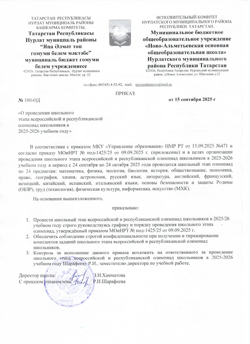 Муниципальное бюджетное общеобразовательное учреждение «Ново-Альметьевская основная общеобразовательная школа» Нурлатского муниципального района Республики Татарстан / Татарстан Республикасы Нурлат муниципаль районы "Яңа Әлмәт төп гомуми белем мәктәбе" муниципаль гомуми белем учреждениесе