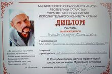 Ученица 5 "Г" класса Истова Самира Михайловна стала участницей Республиканской научно‑практической конференции имени Мударриса Аглямова и получила Диплом за участие!