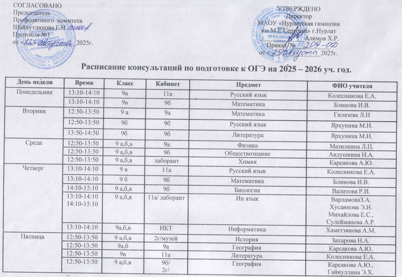 Расписания консультаций по подготовке к ОГЭ на 2025-2026 уч.год
