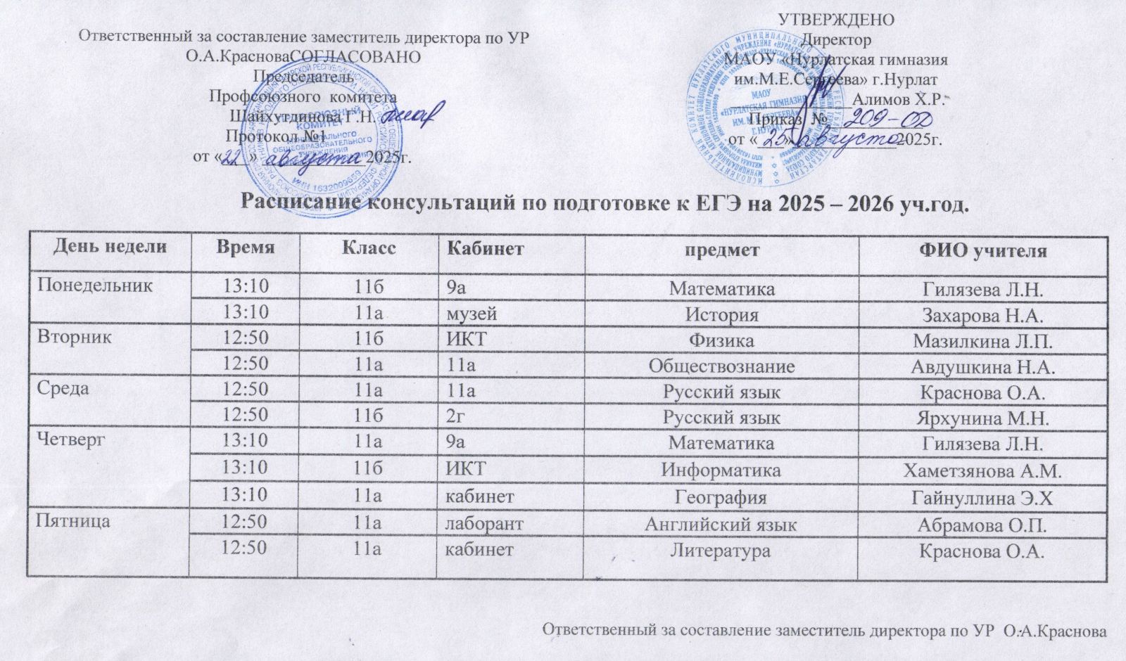 Расписания консультаций по подготовке к ЕГЭ на 2025-2026 уч.год