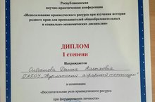 В работе конференции приняли участие и наши педагоги. Сибгатова Дания Насыховна заняла 1 место в номинации «Воспитательная роль краеведческого ресурса при формировании личности». Ханяфиева Нурсина Салихзяновна заняла 3 место в номинации «Опыт использования краеведческого ресурса для преподавания общеобразовательных и социально-экономических дисциплин». Поздравляем наших талантливых педагогов.