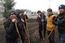 Центральная площадь Нурлата станет краше. Студенты Нурлатского аграрного техникума приняли активное участие в благоустройстве центральной площади города.