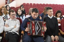 Затем педагог продемонстрировал звучание баяна, сыграл различные мелодии. В конце мероприятия студенты смогли под руководством педагогов потренироваться игре на инструменте. -