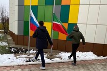 Торжественная церемония поднятия Государственных флагов Российской Федерации и Республики Татарстан.
